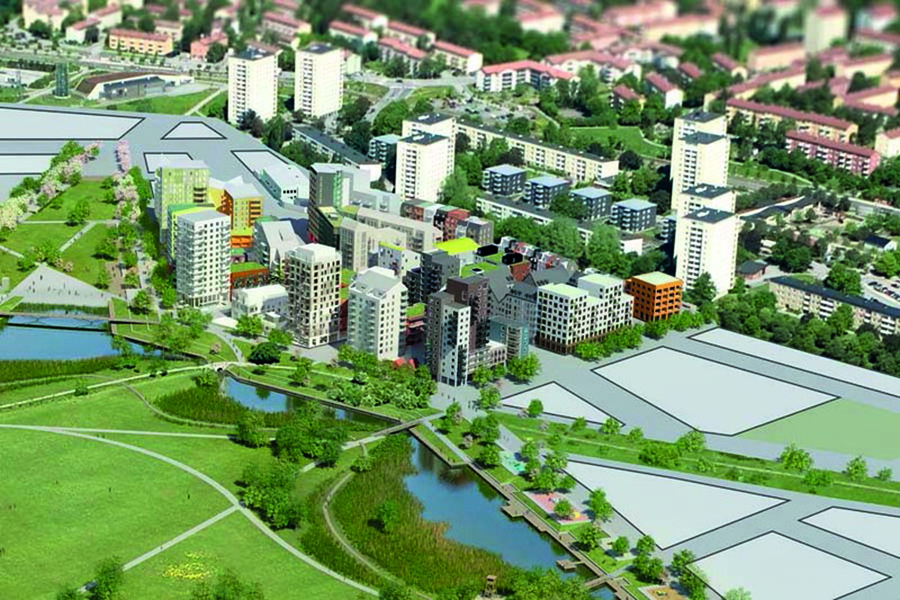 Flygbild etapp 1 där drygt 1 000 bostäder ska byggas.