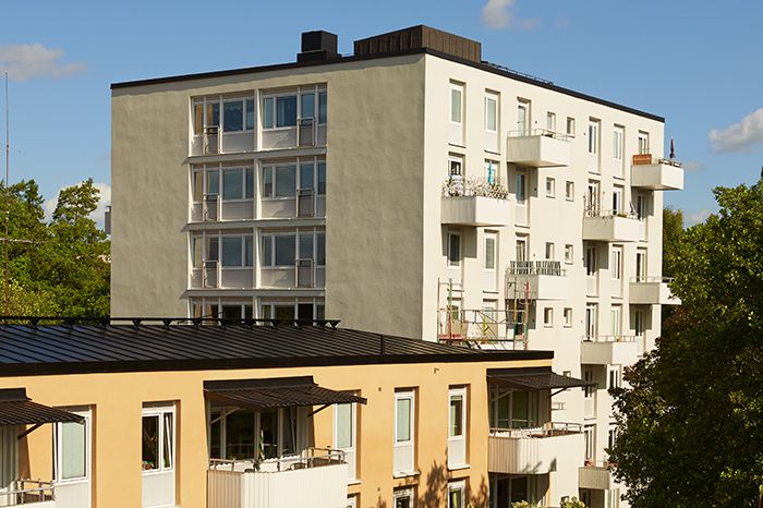De flesta lägenheterna har balkong, men ett rum respektive två rum och kokvrå saknar balkong.